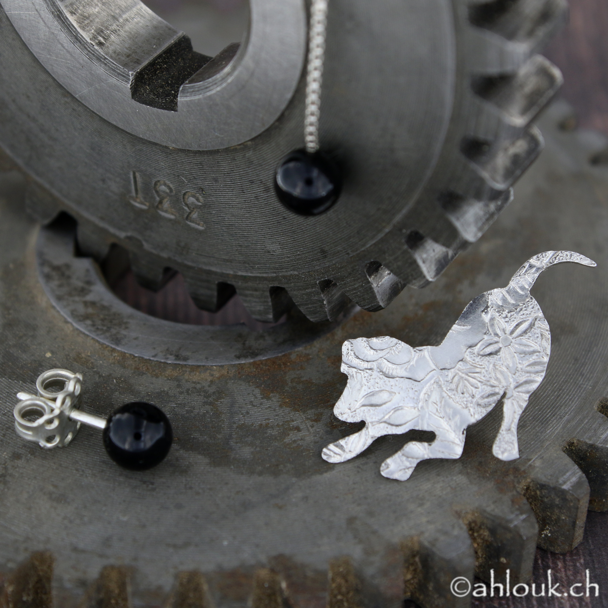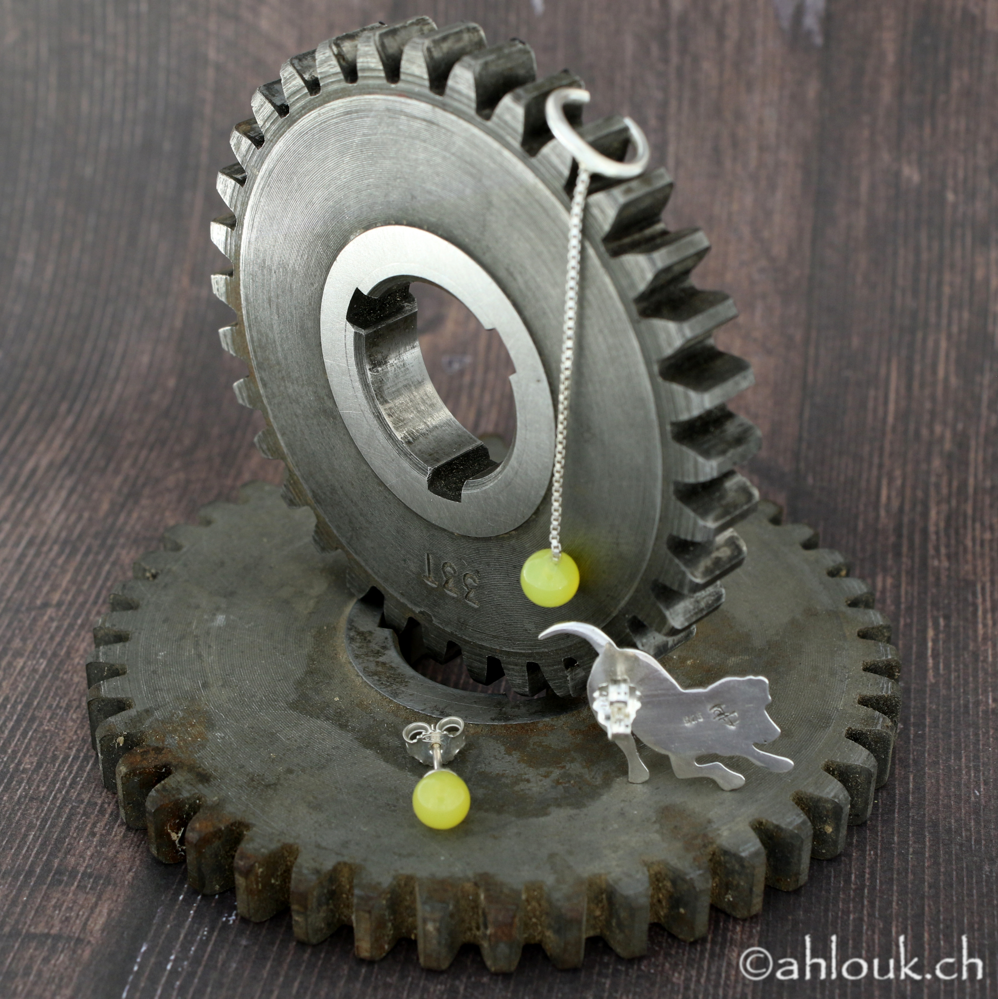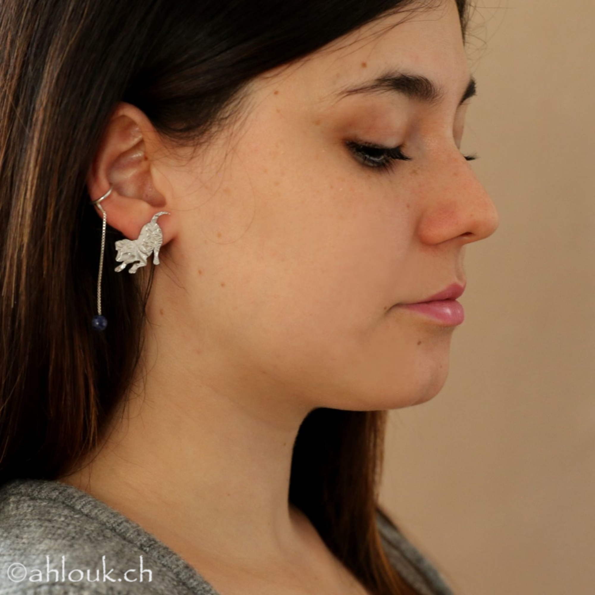 Simpatici orecchini asimmetrici a forma di cane che gioca con una palla