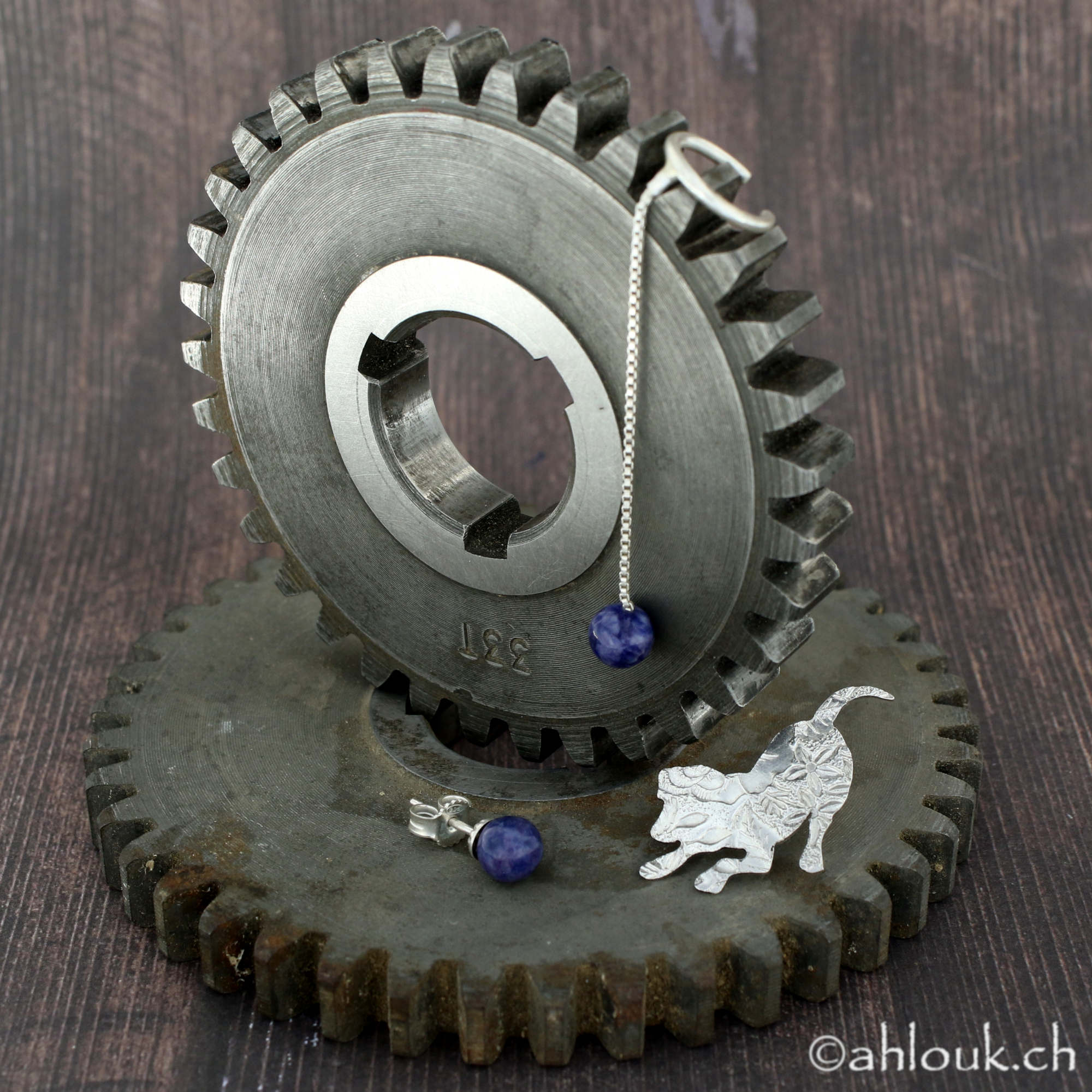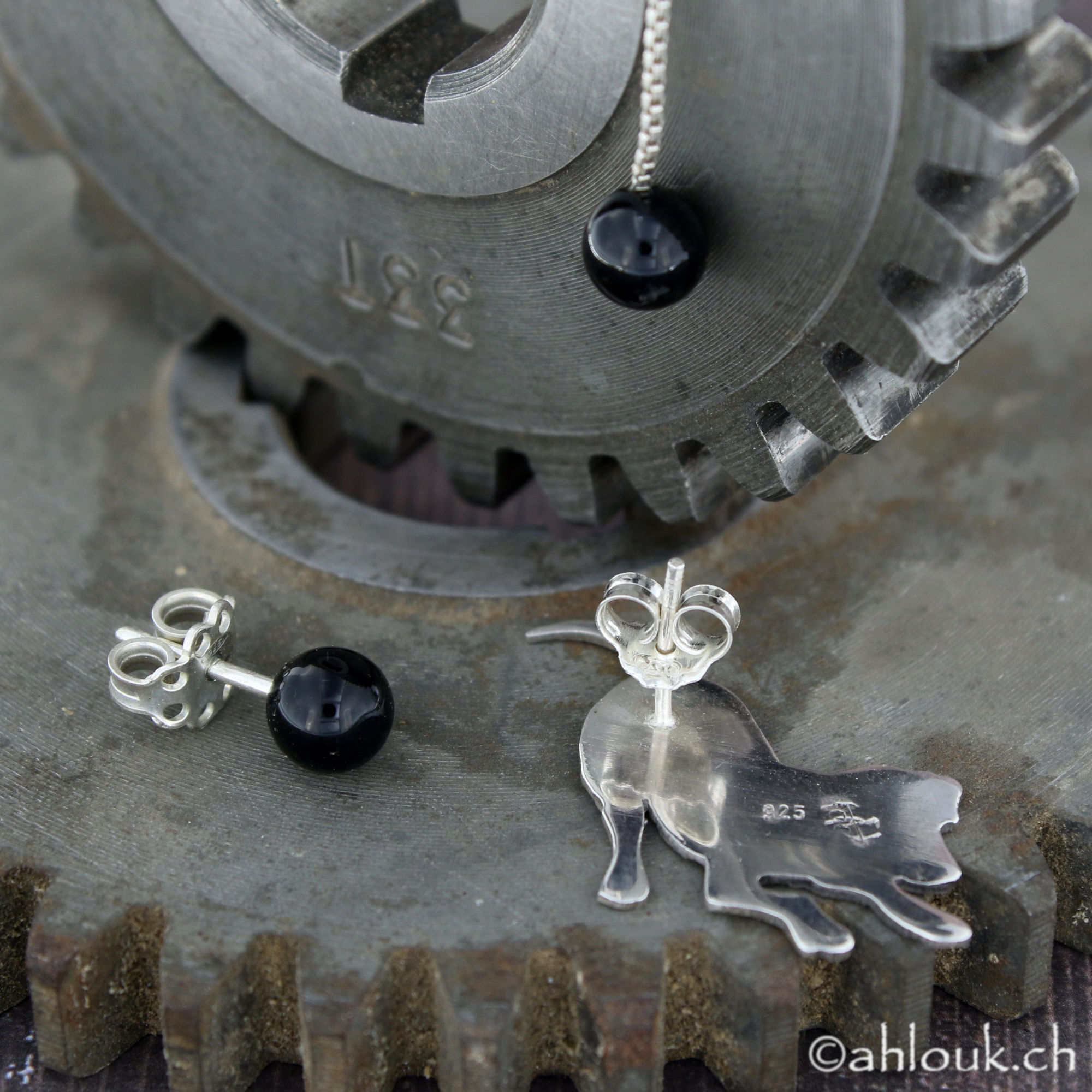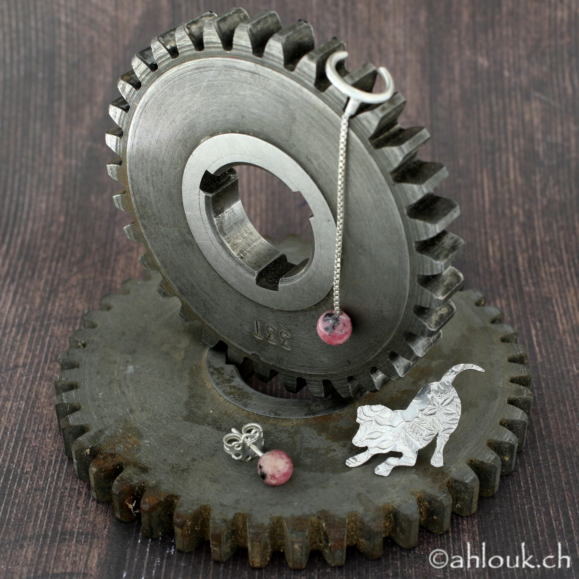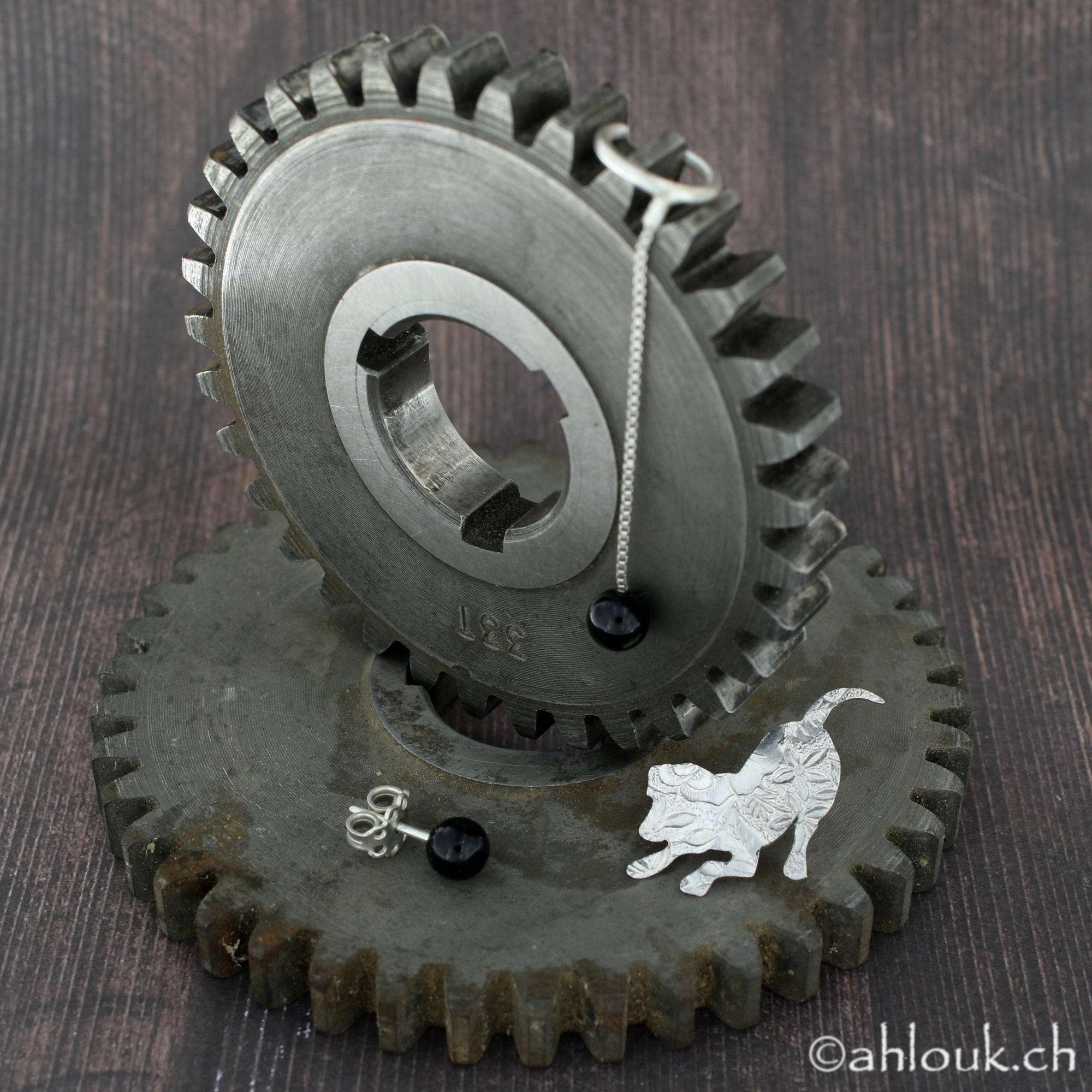Simpatici orecchini asimmetrici a forma di cane che gioca con una palla