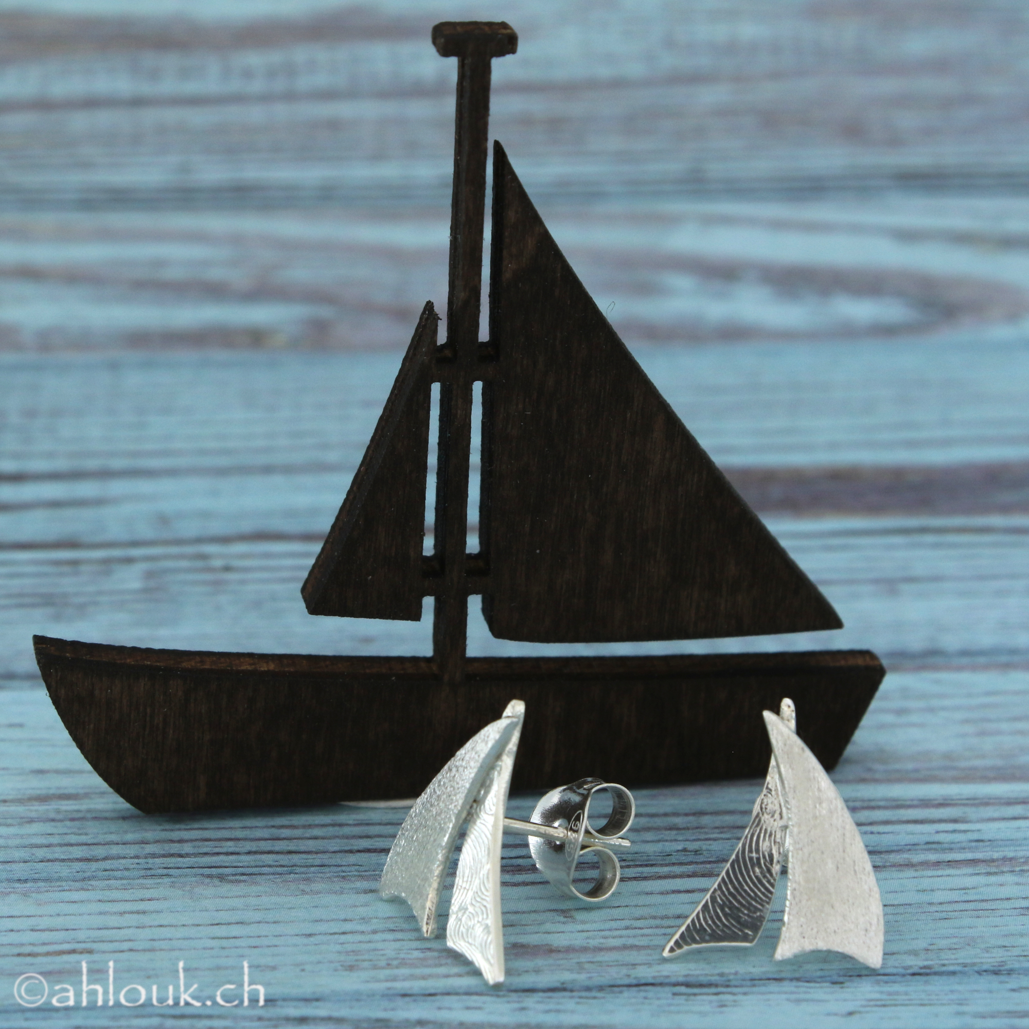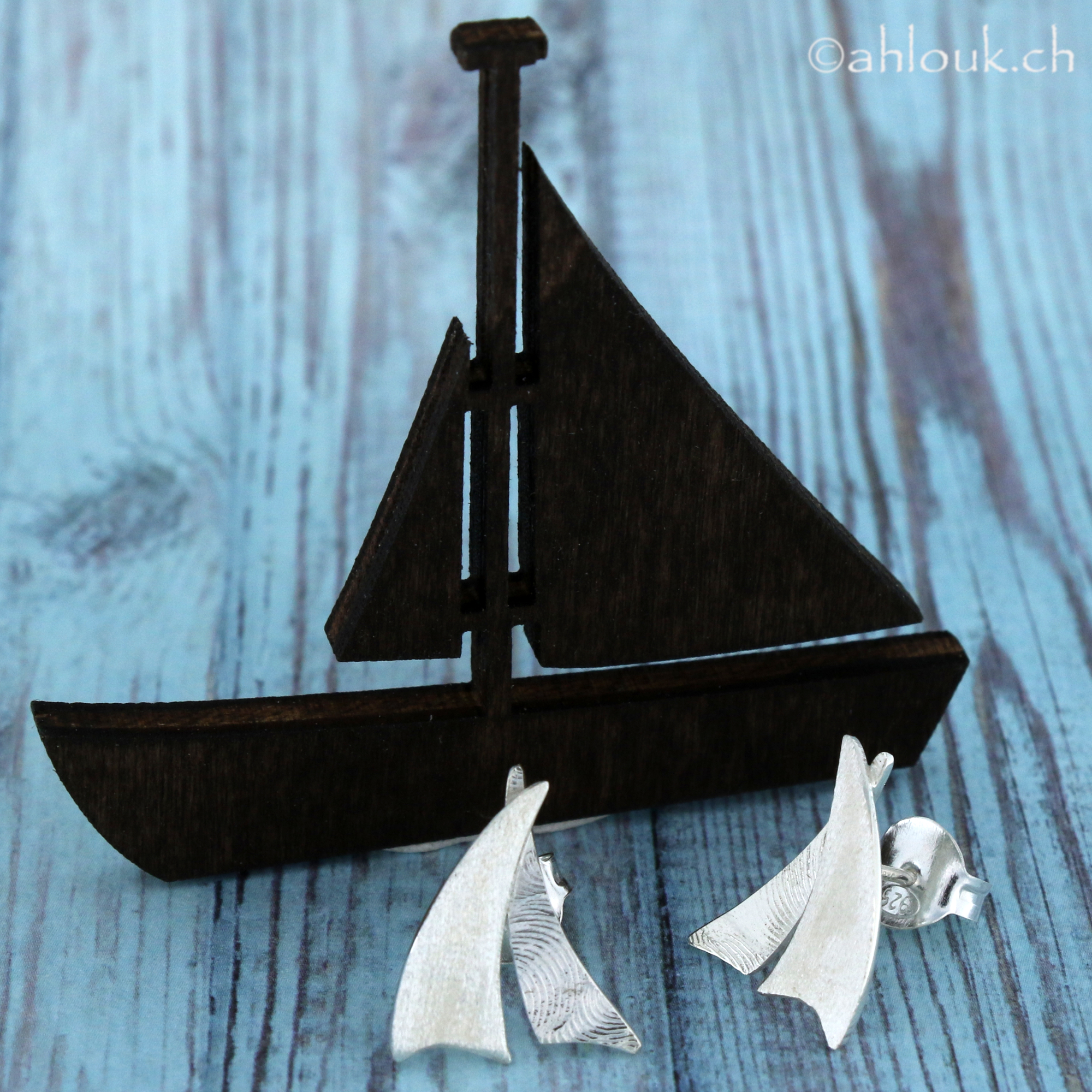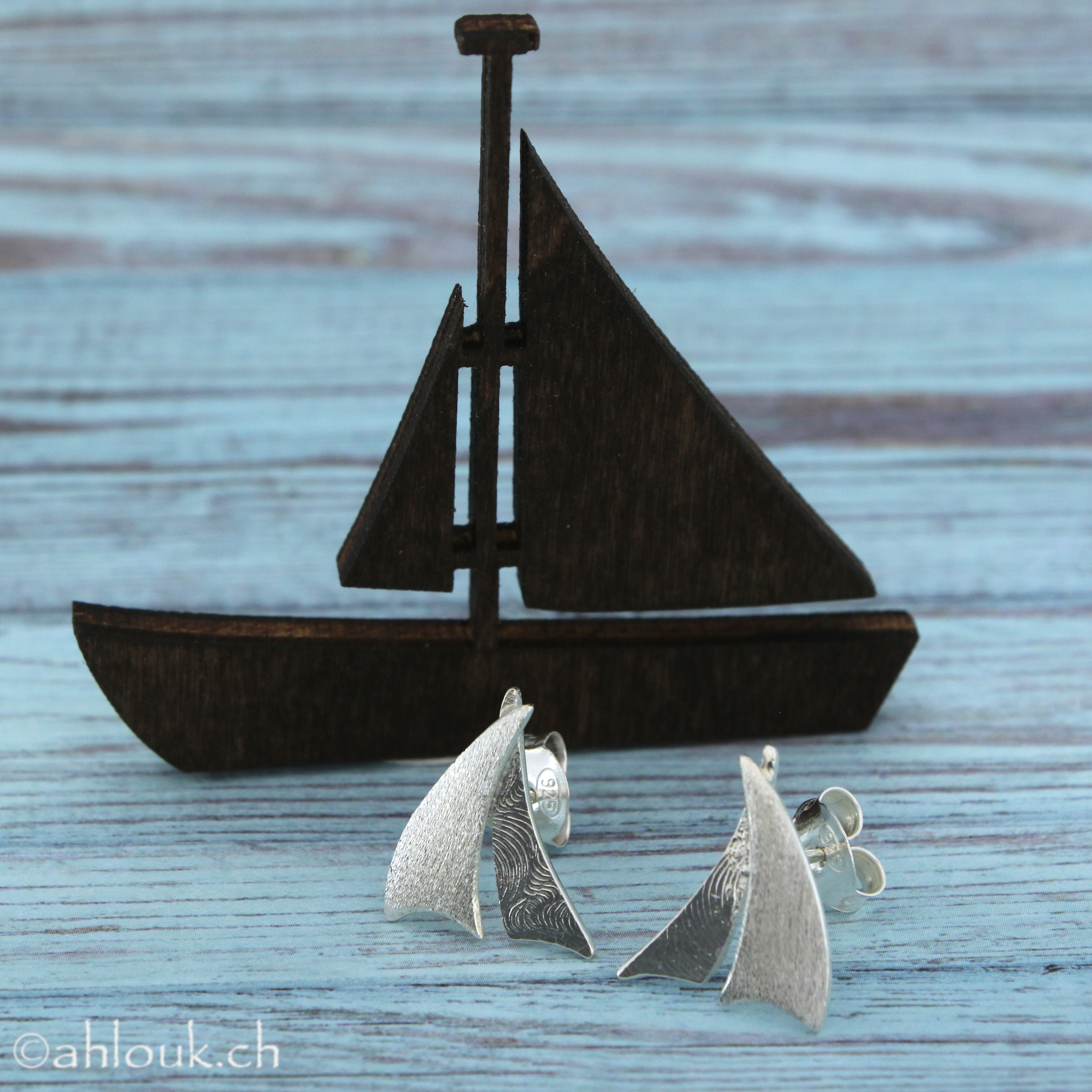 The earring has the shape of a boat’s sails. Each sail has a different pattern.